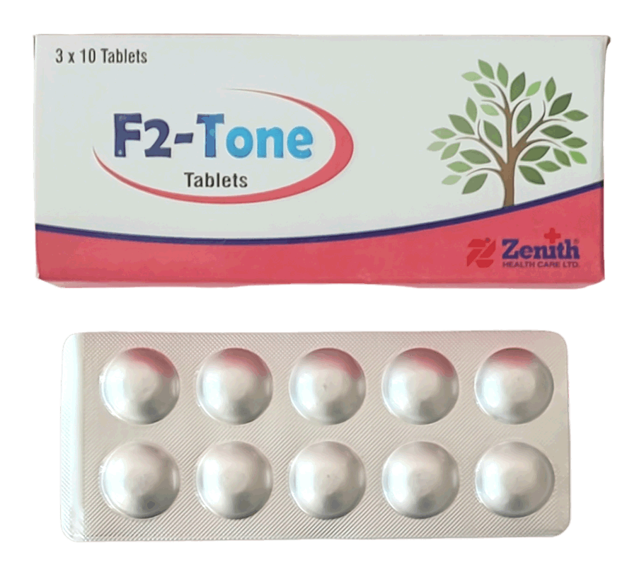 F2-Tone tablet is a comprehensive formulation for menstrual disorders. F2-Tone Tablet possess oestrogenic, anti-inflammatory, anxiolytic, digestive and haematinic properties.